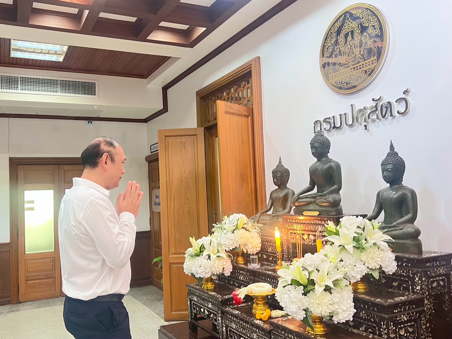 ผู้อำนวยการกองแผนงาน ไหว้สักการะสิ่งศักดิ์สิทธิ์ประจำกรมปศุสัตว์ เพื่อความเป็นสิริมงคลเนื่องในโอกาสเข้ารับตำแหน่งใหม่